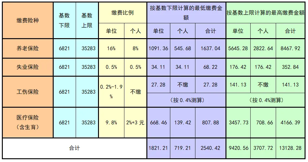 下限:缴费基数低于各地规定的最低缴费基数(当地社平工资的60%),就按照最低。