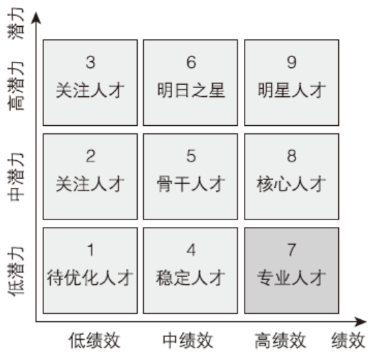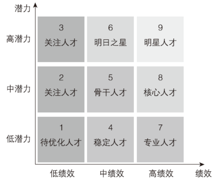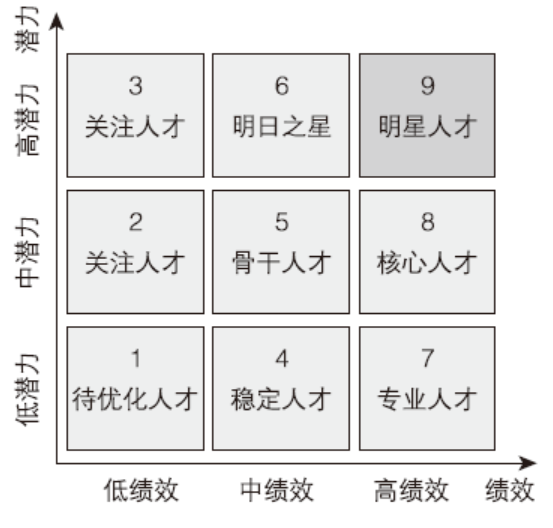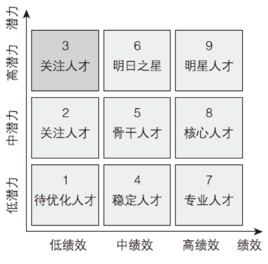 图2 人才盘点中使用的高潜九宫格(绩效-潜力九宫格)