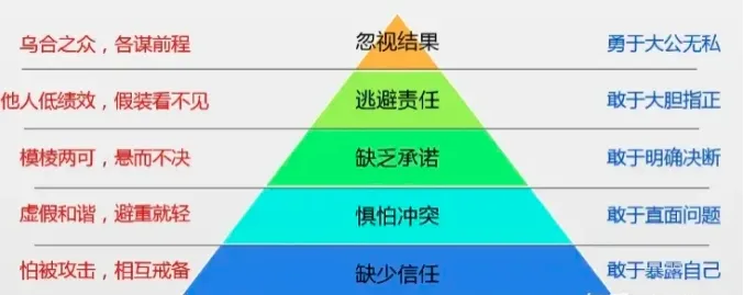 当无法做出明智的决策、缺乏有效的沟通技巧或者没有清晰的工作安排时,便很难对团队成员做出承诺,这会一定程度降低团队的凝聚力和执行力。比如,团队中常见的成员工作意愿不强、工作效率低下等问题,通常与缺乏承诺和指令不清有关。
